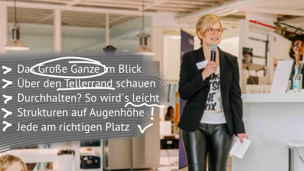 Gabriela Buchfink hat uns in ihrer Einstimmung zum Netzwerken eingeladen, „nicht nur zu fragen: What´s in for me? … sondern: Was können wir hier zusammen gestalten – und wen bräuchte es dazu?“