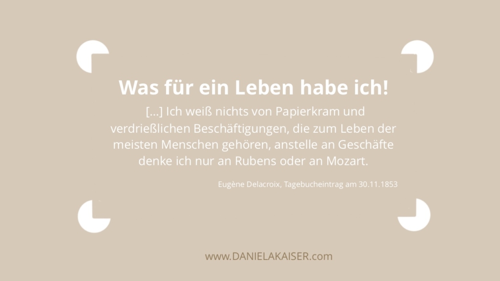 … das notierte der Maler Eugène Delacroix am 30. November 1853 in sein Tagebuch. Und doch war Delacroix ein äußerst erfolgreicher Verkäufer, der sich sowohl der konventionellen als auch der neuen Vertriebskanäle bediente. Und der sich genaue Gedanken zur Preisgestaltung für seine Werke machte. Doch dazu morgen mehr.